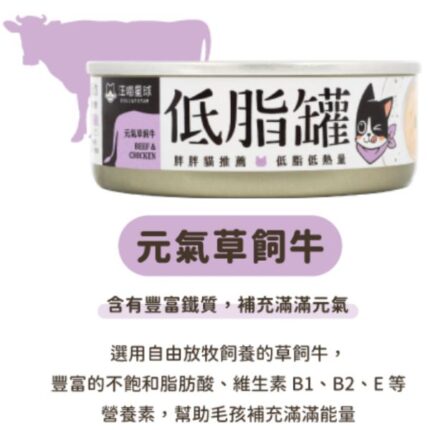 汪喵星球- 貓咪低脂無膠主食罐 (元氣草飼牛) 80g