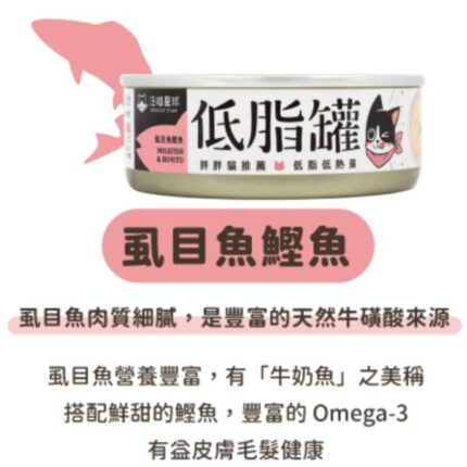 汪喵星球- 貓咪低脂無膠主食罐 (虱目魚鰹魚) 80g