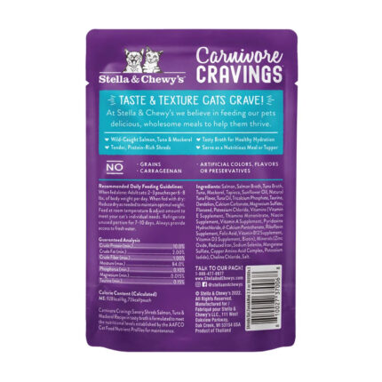 Stella & Chewy’s食肉獸滋味包 – 三文魚+吞拿魚+鯖魚[肉絲]配方2.8Oz