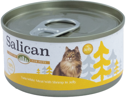 Salican 挪威森林 – 白肉吞拿魚、鮮蝦啫喱貓罐頭85g (泥黃)