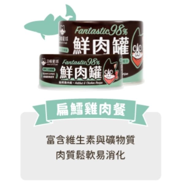 汪喵星球- 貓用 FANTASTIC 98% 鮮肉無膠主食罐 (扁鱈雞肉) 80g