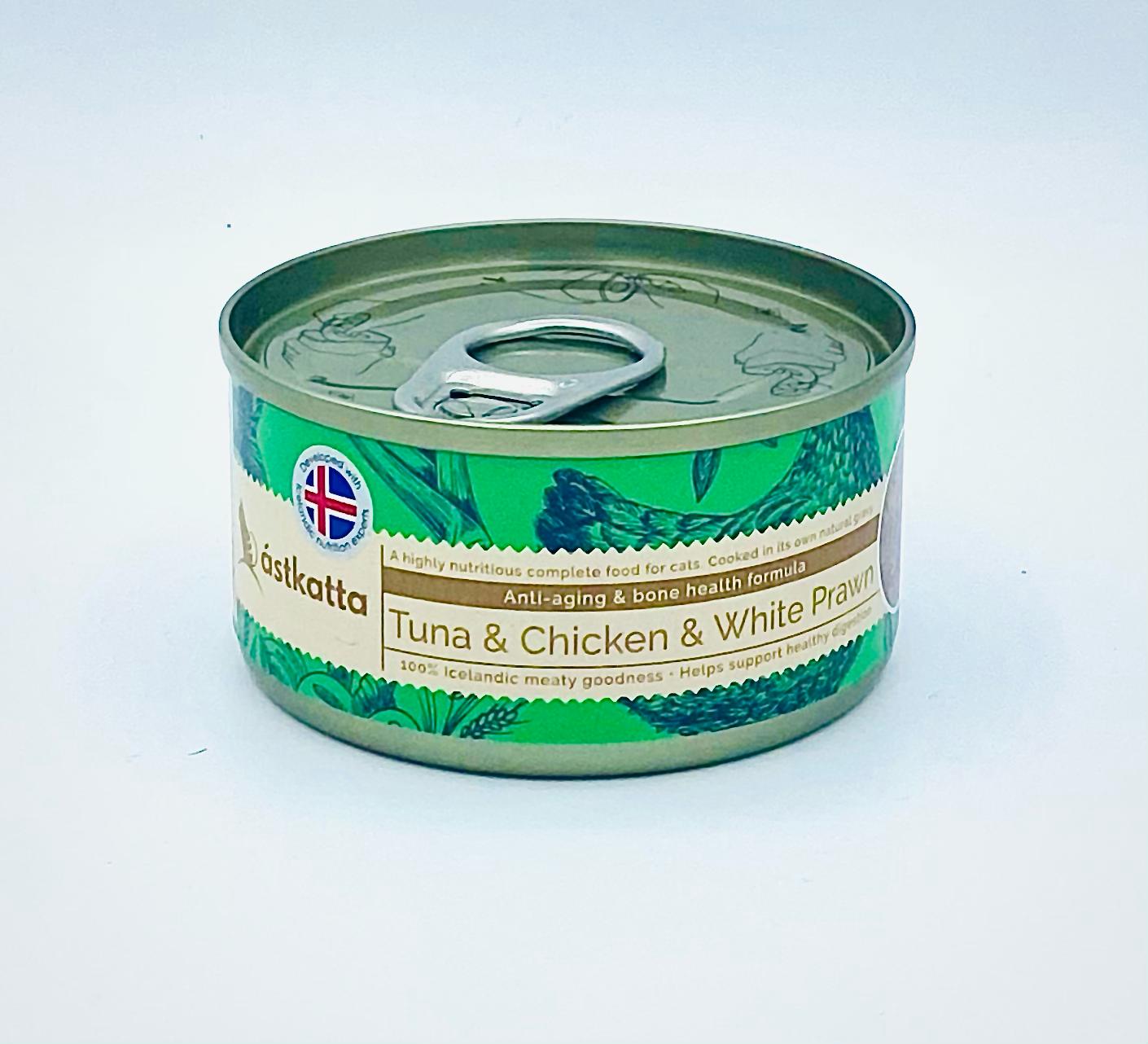 Astkatta冰島貓罐, 抗衰老及骨骼健康系列主食罐 – 白鰹吞拿魚+雞肉+白蝦 (80g)