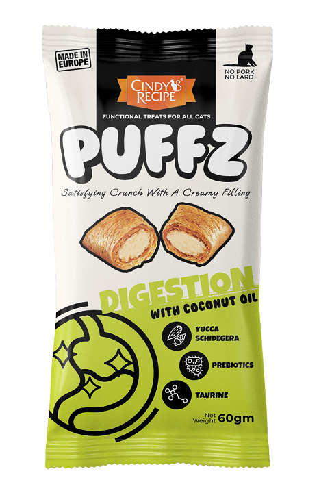 Cindy’s Recipe@Puffz功能性貓零食具有雙重質地的酥脆外皮和令人驚嘆的柔軟奶油狀中心 ; 僅採用最優質的成分製成,含有椰子油、纖維、維生素 D3 和低聚果糖-每種成分均專為解決貓的常見問題(如毛球、牙齦疾病、皮膚或腸道敏感),而設計非常適合玩耍和作為貓的獎勵。