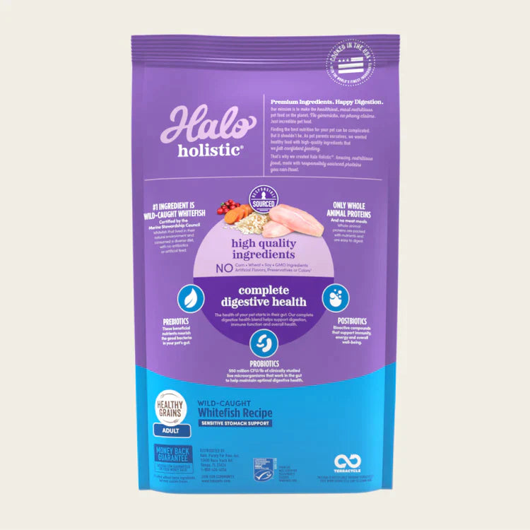 Halo Sensitive Stomach Support Healthy Grains Wild-Caught Whitefish Recipe 10LB