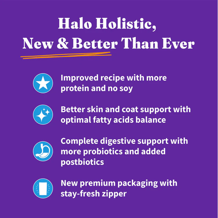 Halo Sensitive Stomach Support Healthy Grains Wild-Caught Whitefish Recipe 3LB