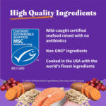 Halo 使用真正的全肉、家禽或魚,在我們的整體貓糧中從未使用任何類型的“肉粉”第一大成分是負責任採購的野生捕獲鮭魚。 它獲得了海洋管理委員會的認證,確保魚類生活在自然環境中並食用多樣化的飲食——不含抗生素或人工飼料。 這對你來說意味著什麼? 為您的寵物提供更高品質的食物