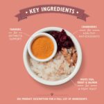 馬鈴薯、脫水雞蛋、植物纖維、葵花籽油、三文魚肉汁、魚肉汁、亞麻籽、維生素和螯合礦物質、綠邊青口、三文魚油、海藻油提取物、果寡糖、胡蘿蔔、覆盆子、酸果蔓、菜、八角、胡蘆巴、氨基葡萄糖、甲磺酰甲烷、酸軟骨素