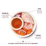 30%雞肉 10%鱒魚 21%豬肉 其他成份為4%牛肉、三文魚油、螯合礦物質