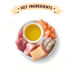三文魚(30%);大蝦(5%);雞(15%) 豬肉15%;鮭魚油;螯合礦物質
