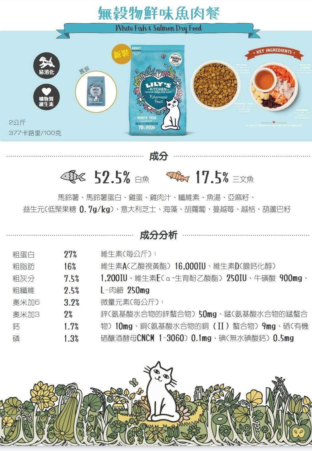 Lily’s Kitchen天然貓貓糧 – 無穀物鮮味魚肉餐2kg