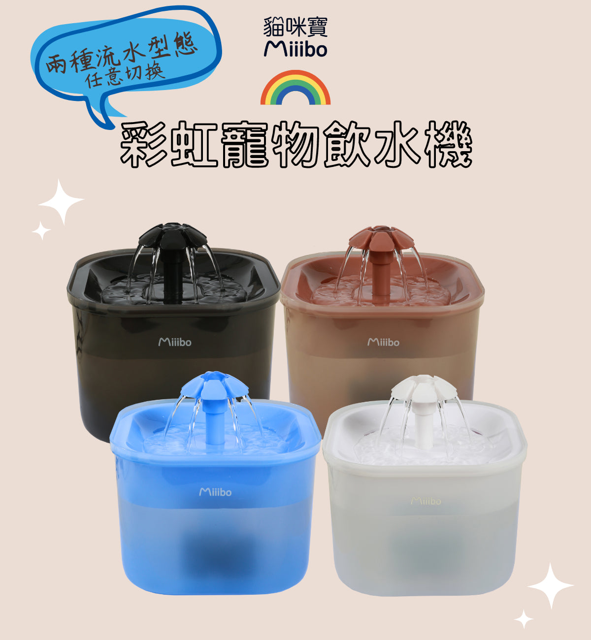 MIIIBO 貓咪寶彩虹寵物飲水機(白色)