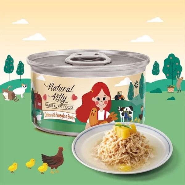 Natural Kitty – 100%天然雞肉+菠蘿雞湯低磷貓罐頭 (80g)