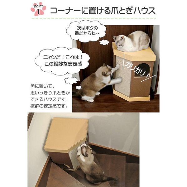 ● 可放置在房間角落的貓爪板屋