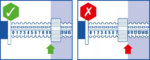 要使用正確量的產品,請使用注射器柱塞上的便捷輪。旋轉滾輪,直到它位於代表要管理的所需數量的數字的右(請參見下圖,顯示Example 10ml的正確和錯誤位置)。