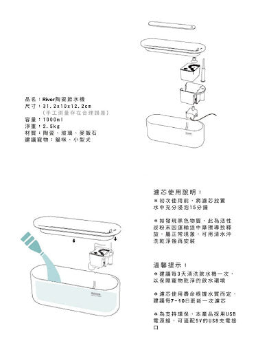 River全陶瓷⾃動飲水機 (MOBOLI – 粉藍色)